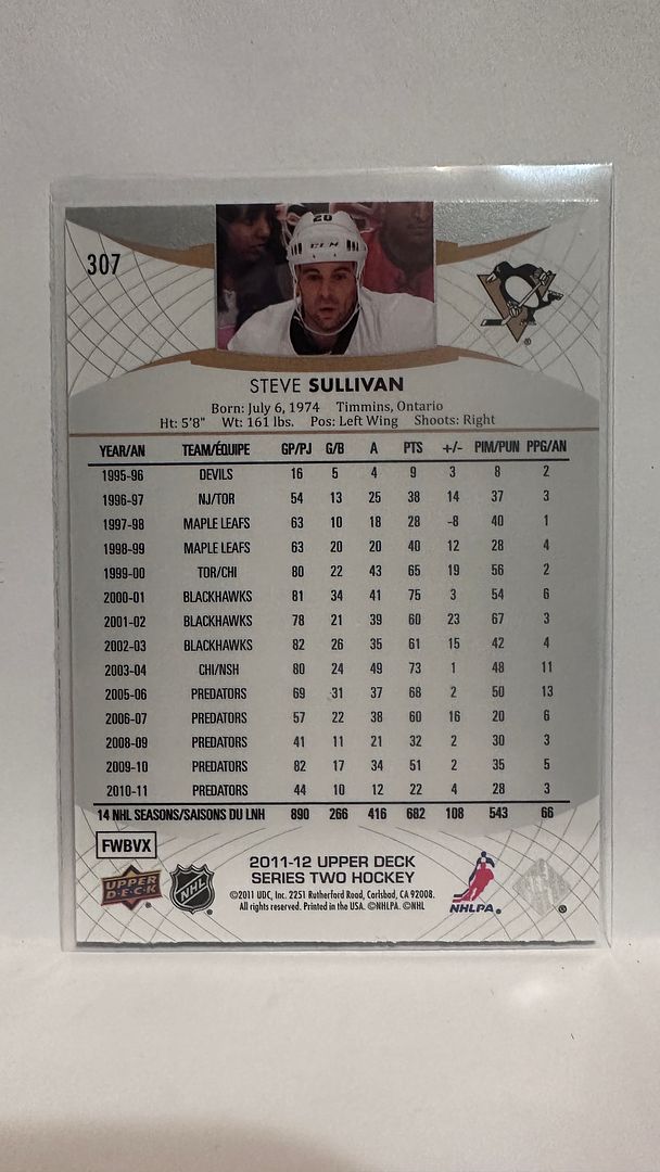 #307 Steve Sullivan Nashville Predators 11-12 Upper Deck Series 2 Hockey Card