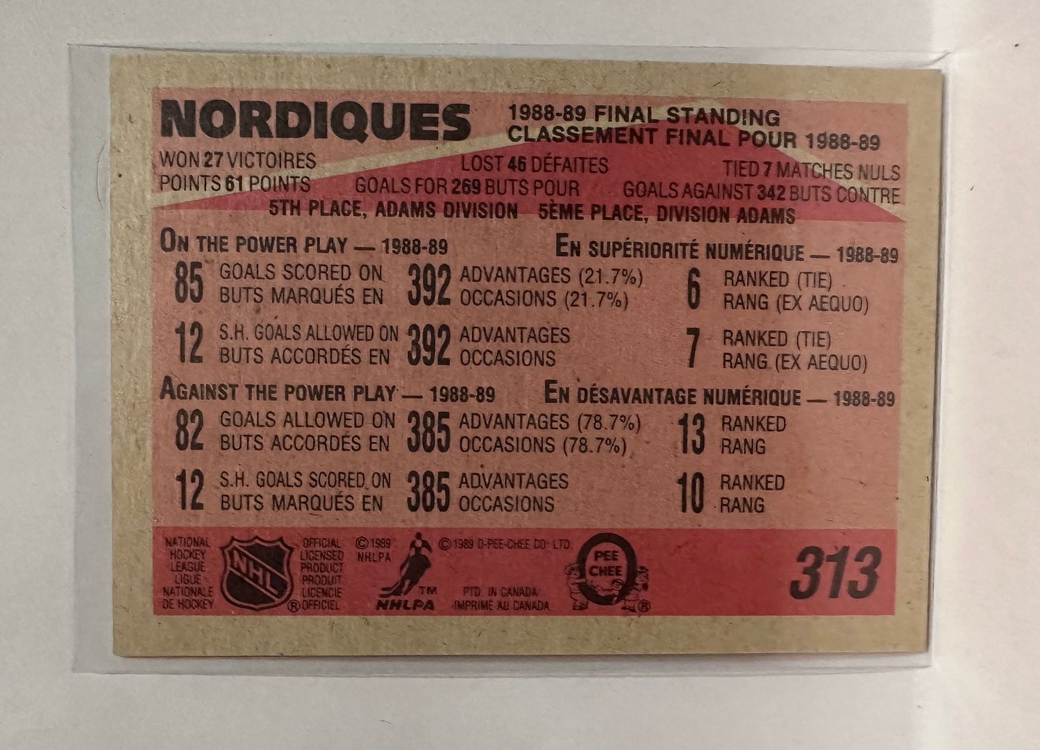 #313 Team Card Quebec Nordiques 89-90 O-Pee-Chee Hockey Card