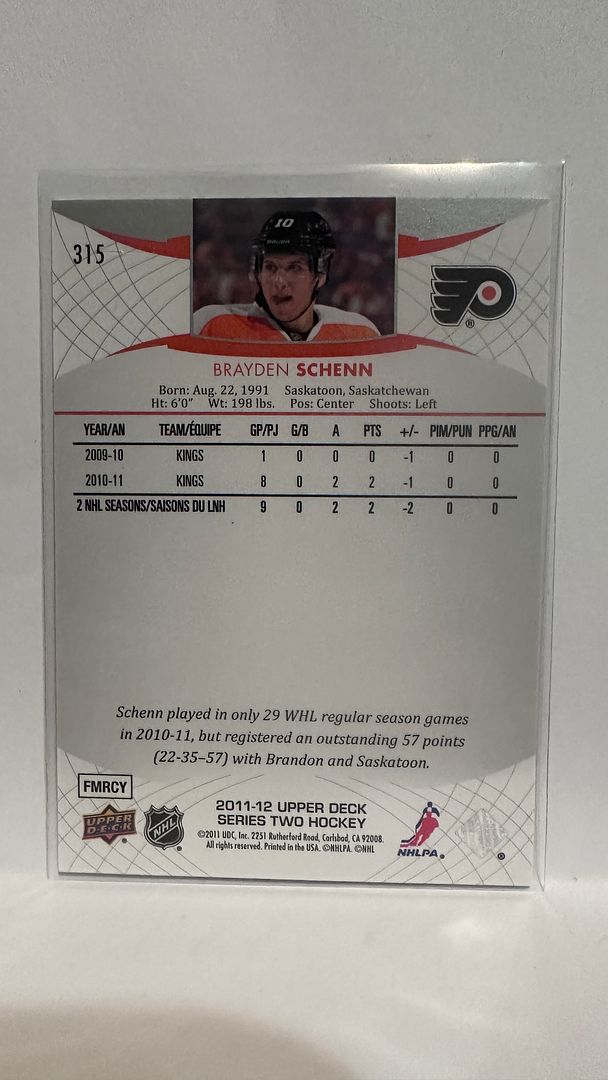 #315 Brayden Schenn Philadelphia Flyers 11-12 Upper Deck Series 2 Hockey Card