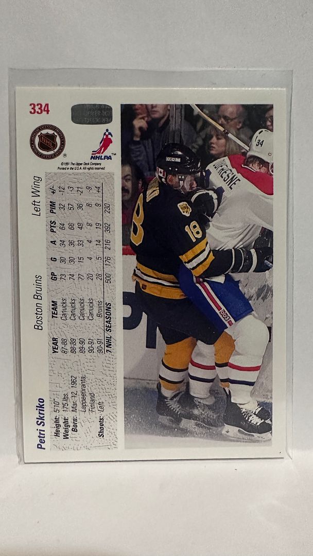 #334 Petri Skriko Boston Bruins 91-92 Upper Deck Hockey Card
