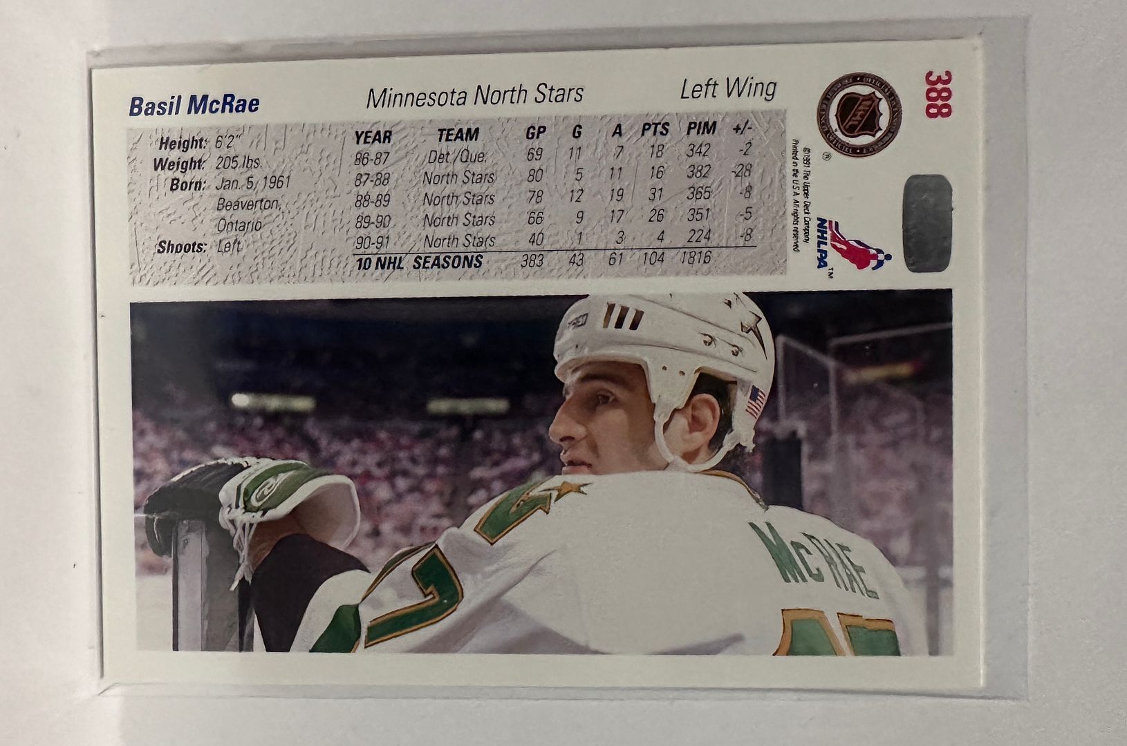#388 Basil McRae Minnesota North Stars 91-92 Upper Deck Hockey Card