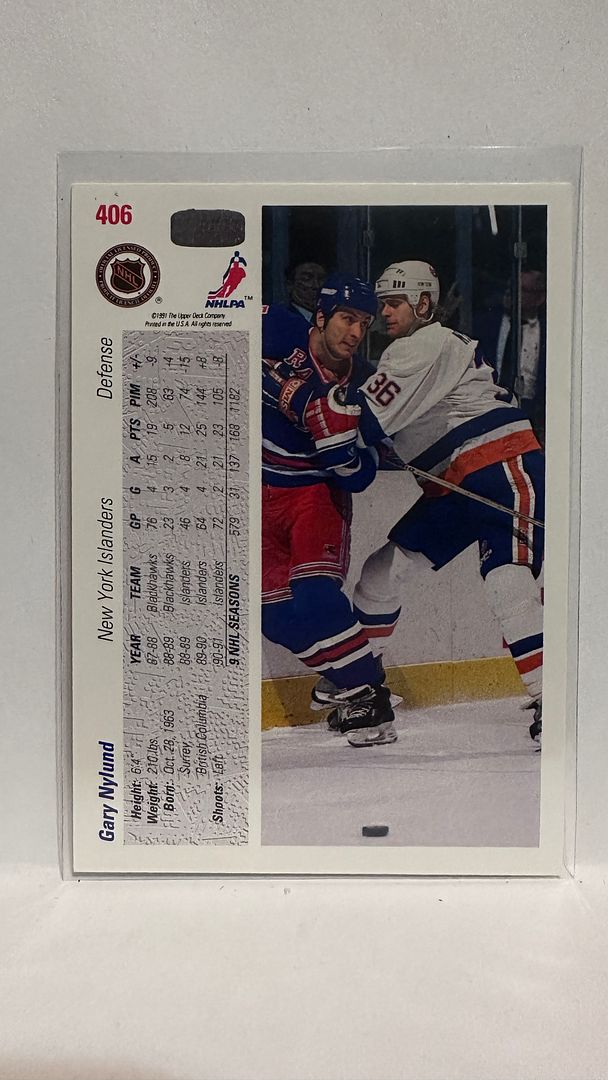 #406 Gary Nylund New York Islanders 91-92 Upper Deck Hockey Card