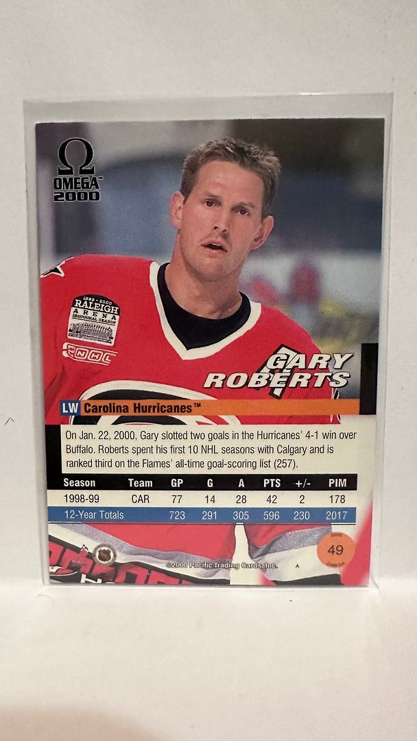 #49 Gary Roberts Carolina Hurricanes 99-00 Omega Hockey Card