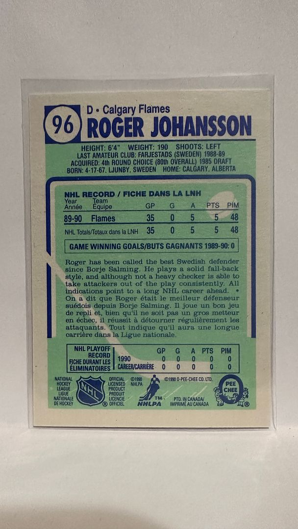 #96 Roger Johansson Top Prospect Calgary Flames 90-91 O-Pee-Chee Hockey Card