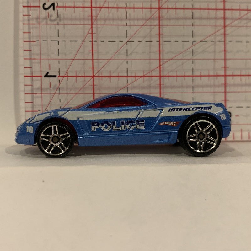 Blue Police Interceptor Cadillac Cien ©2002 Hot Wheels Diecast Car BK