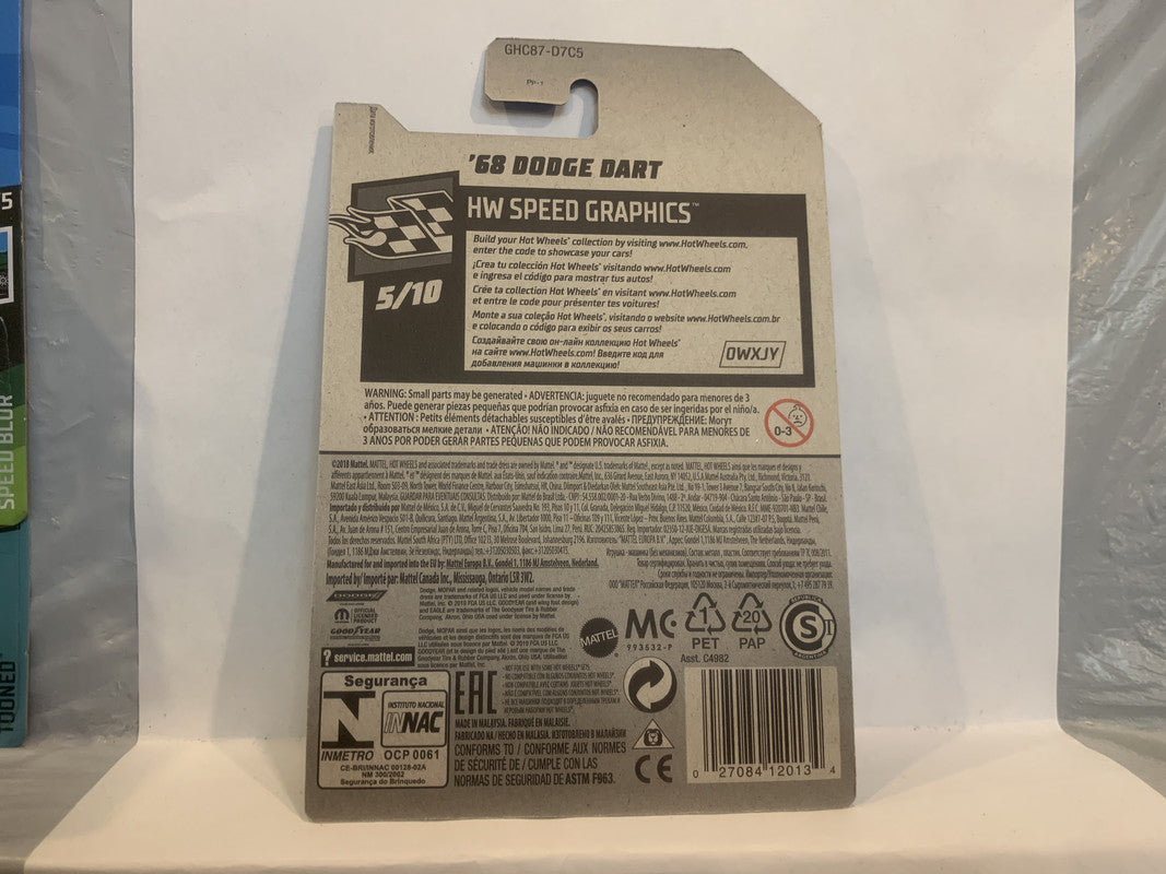 Green '68 Dodge Dart Mopar HW Speed Graphics 2018 Hot Wheels Long Card New Diecast Cars AB