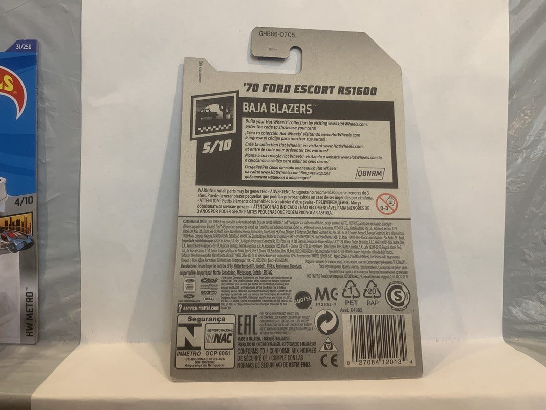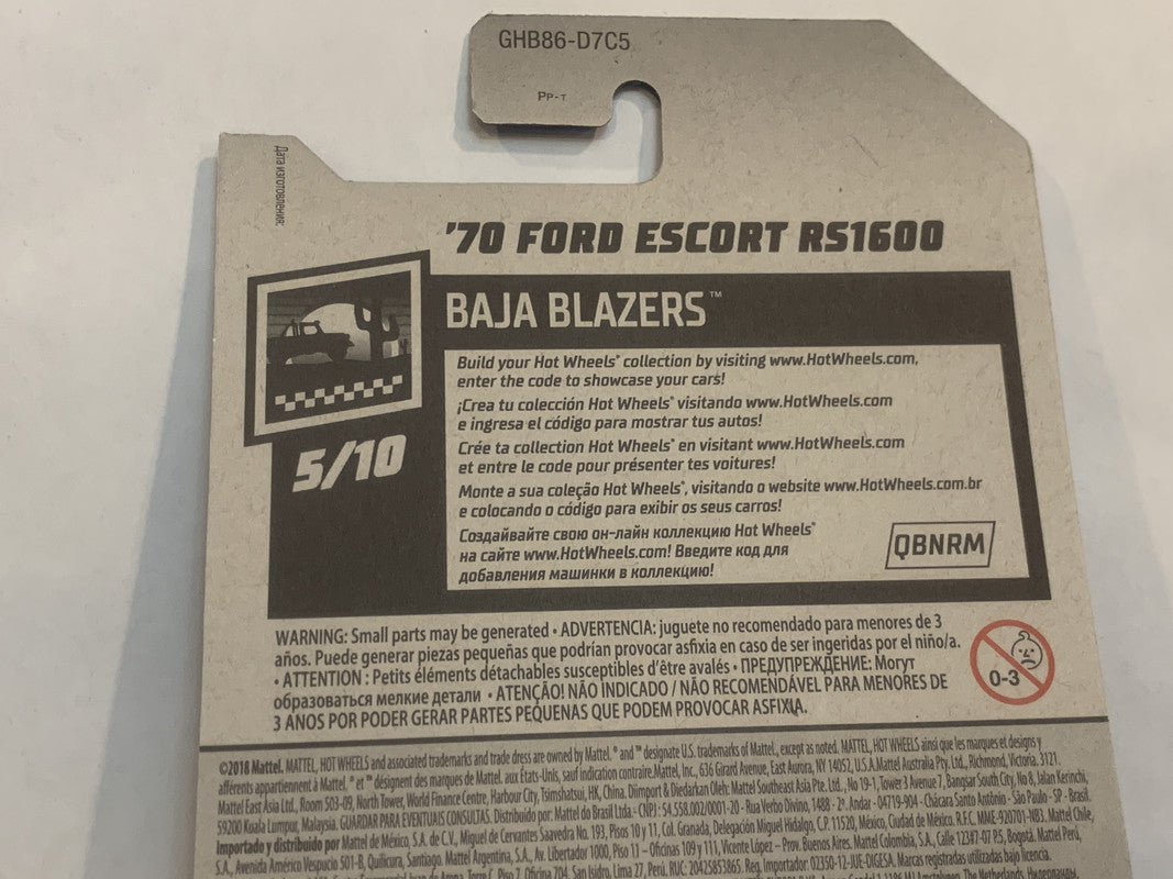 Orange '70 Ford Escort RS1600 Baja Blazers 2018 Hot Wheels Long Card New Diecast Cars AB