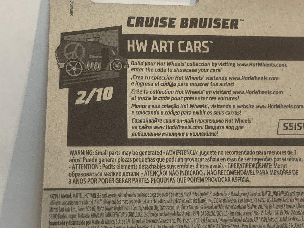 Red Cruise Bruiser HW Art Cars 2018 Hot Wheels Long Card New Diecast Cars AB