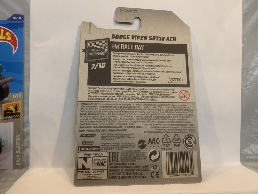 Red Dodge Viper SRT10 ACR HW Race Day 2018 Hot Wheels Long Card New Diecast Cars AB