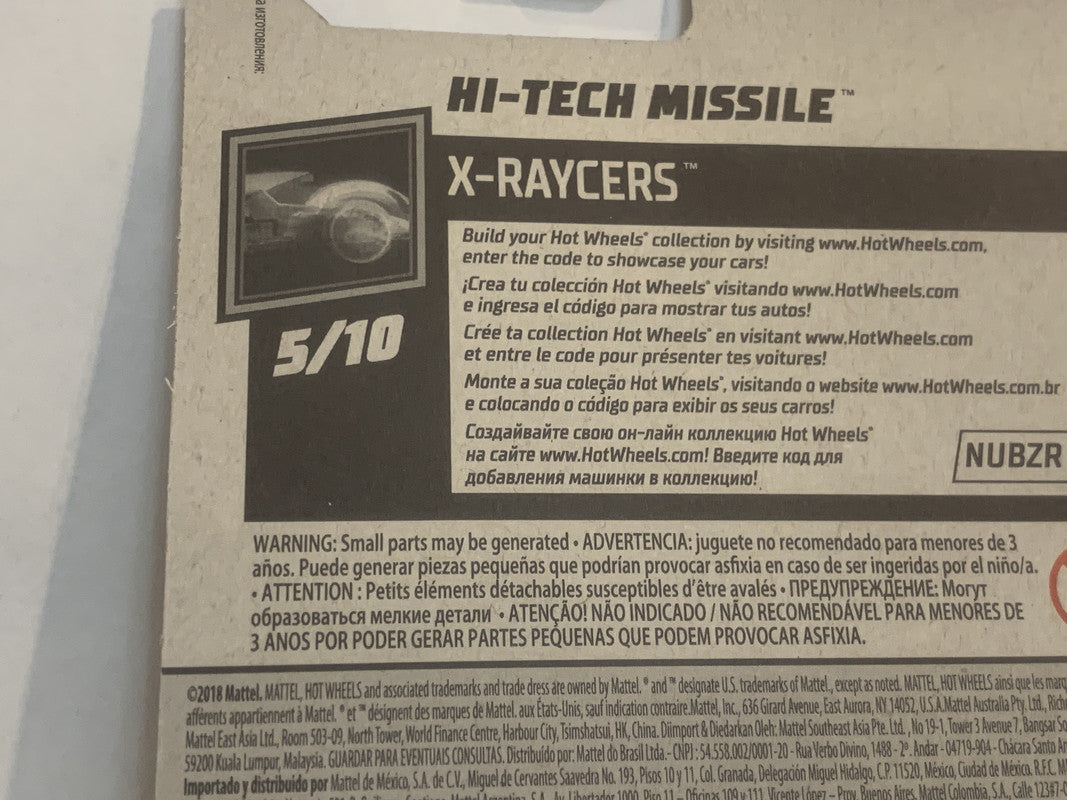 Red Hi-Tech Missile X-Rayers 2018 Hot Wheels Long Card New Diecast Cars AB