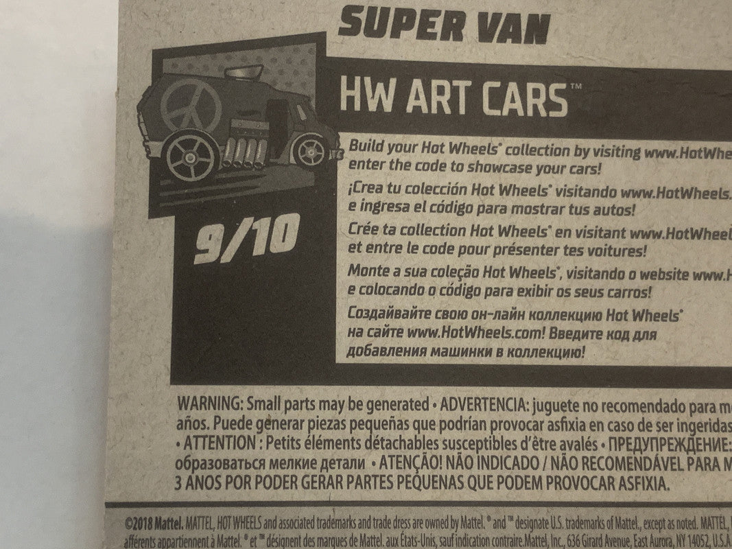 White Super Van HW Art Cars 2018 Hot Wheels Long Card New Diecast Cars AA