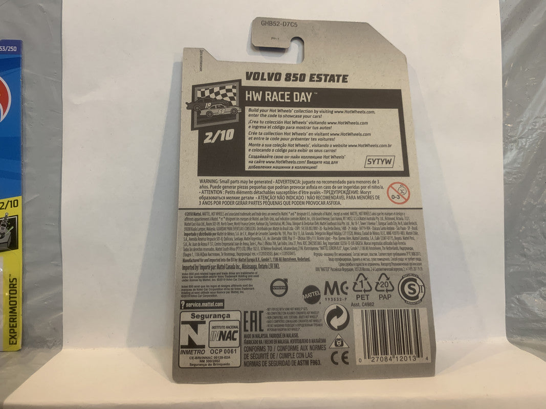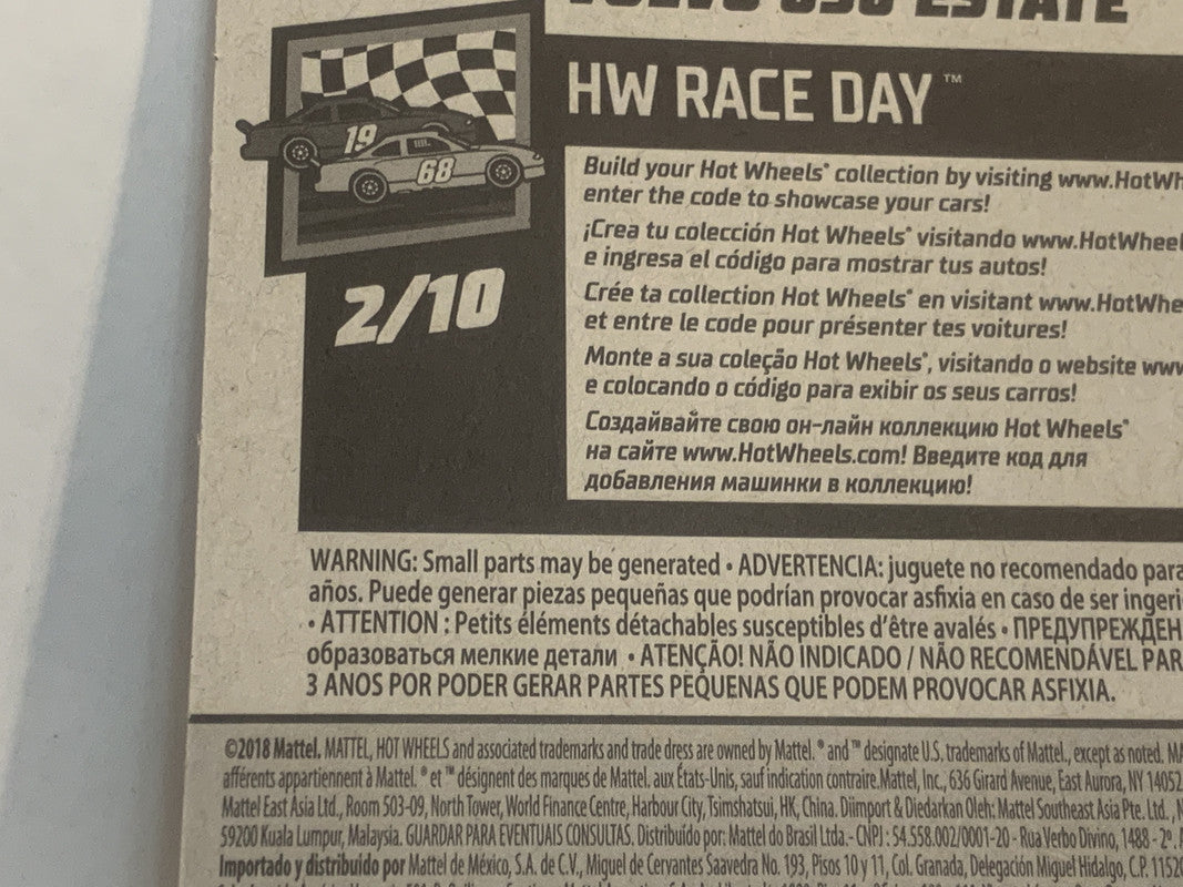 White Volvo #14 850 Estate HW Race Race 2018 Hot Wheels Long Card New Diecast Cars AB