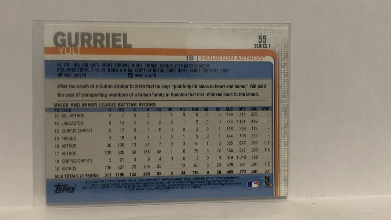 #55 Yuli Gurriel Houston Astros 2019 Topps Series 1 Baseball Card