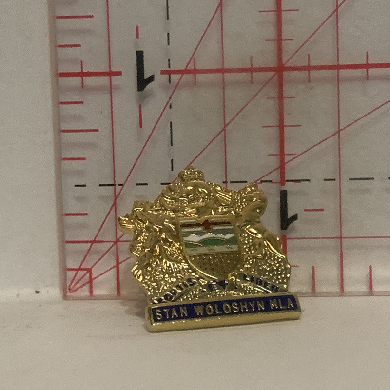 Stan Woloshyn MLA Alberta Coat of Arms Lapel Hat Pin