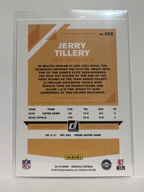 #262 Jerry Tillery Rookie Los Angeles Chargers 2019 Donruss Football Card