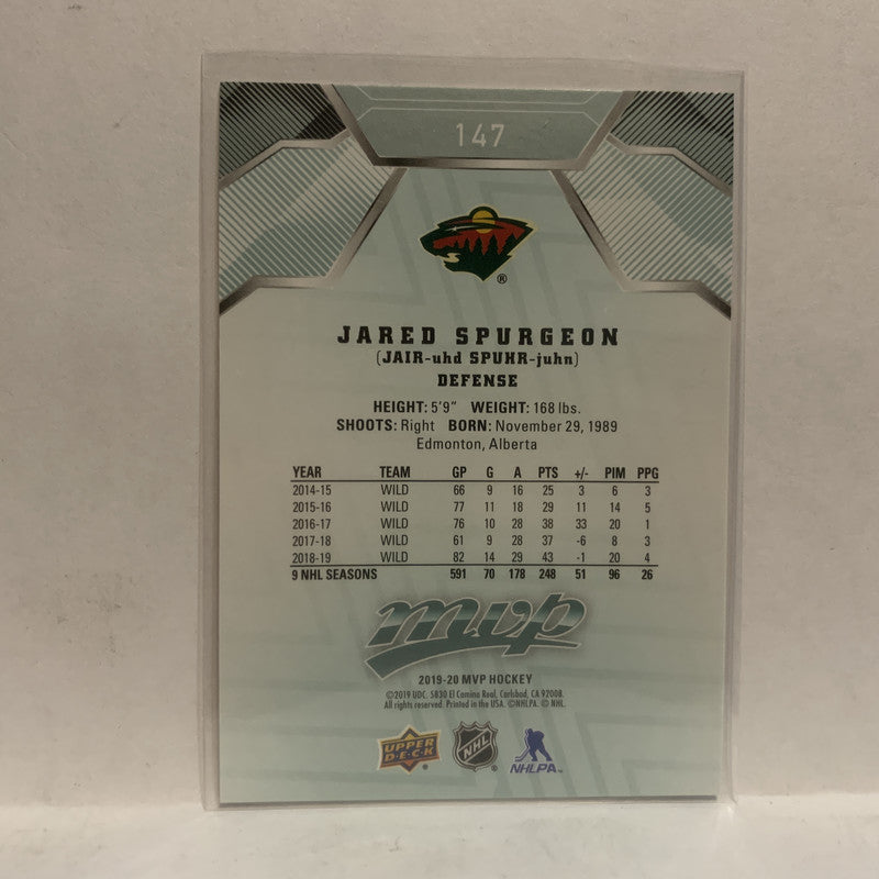 #147 Jared Spurgeon Minnesota Wild 2019-20 Upper Deck MVP Hockey Card KZ2