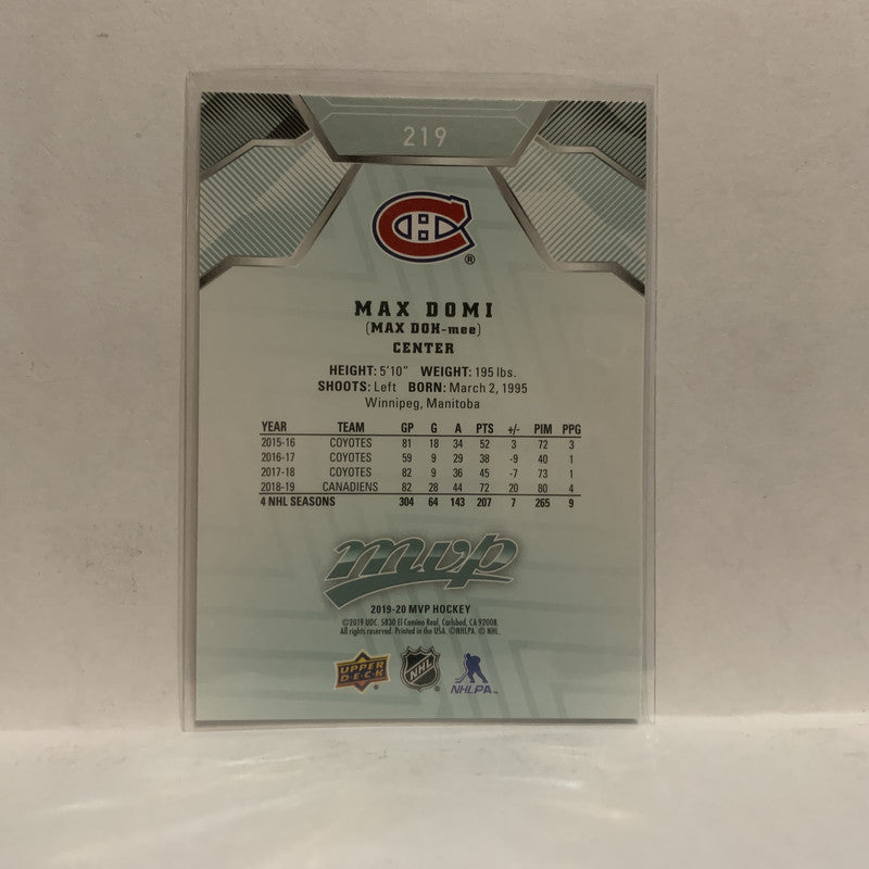 #219 Max Domi Montreal Canadiens 2019-20 Upper Deck MVP Hockey Card KO