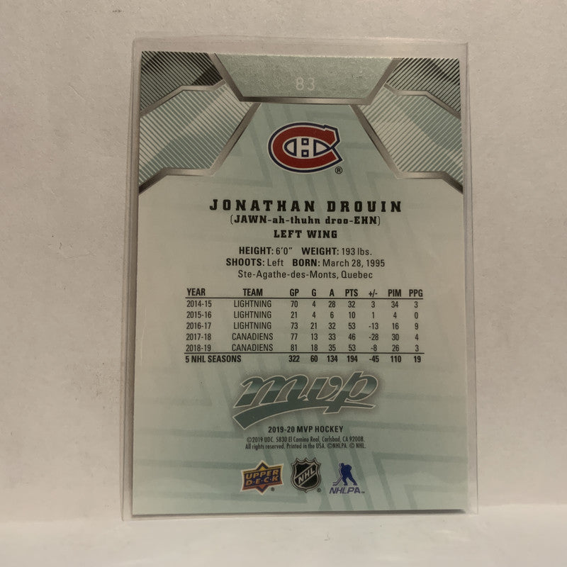 #83 Jonathan Drouin Montreal Canadiens 2019-20 Upper Deck MVP Hockey Card KM