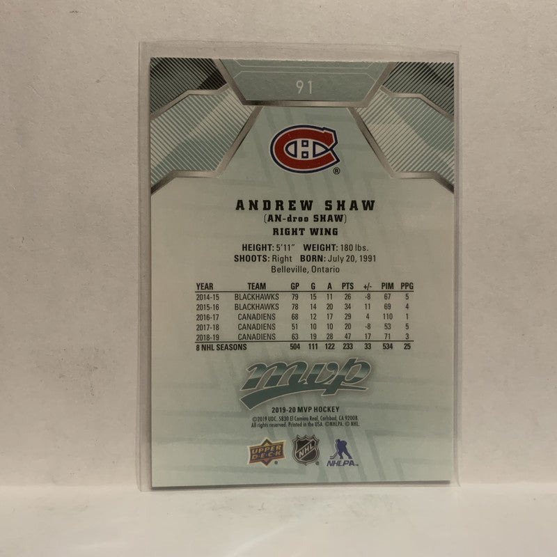 #91 Andrew Shaw Montreal Canadiens 2019-20 Upper Deck MVP Hockey Card LH