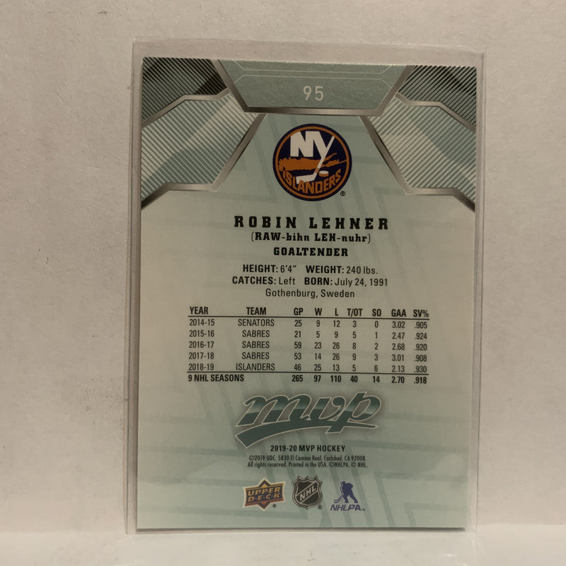 #95 Robin Lehner New York Islanders 2019-20 Upper Deck MVP Hockey Card KN