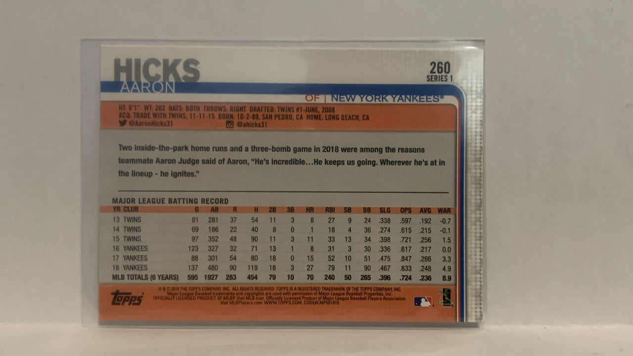 #260 Aaron Hicks New York Yankees 2019 Topps Series 1 Baseball Card