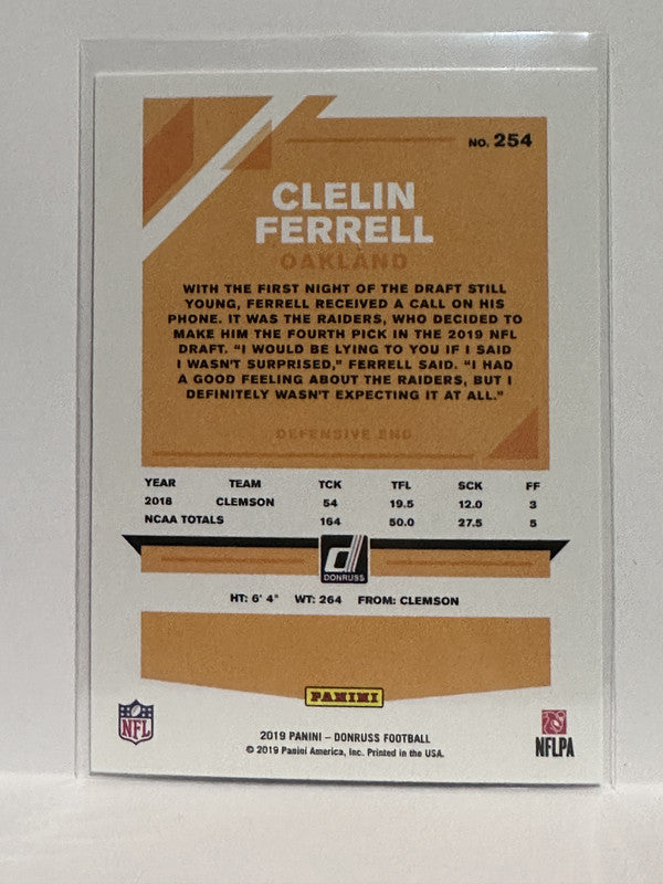#254 Clelin Ferrell RC Oakland Raiders 2019 Donruss Football Card