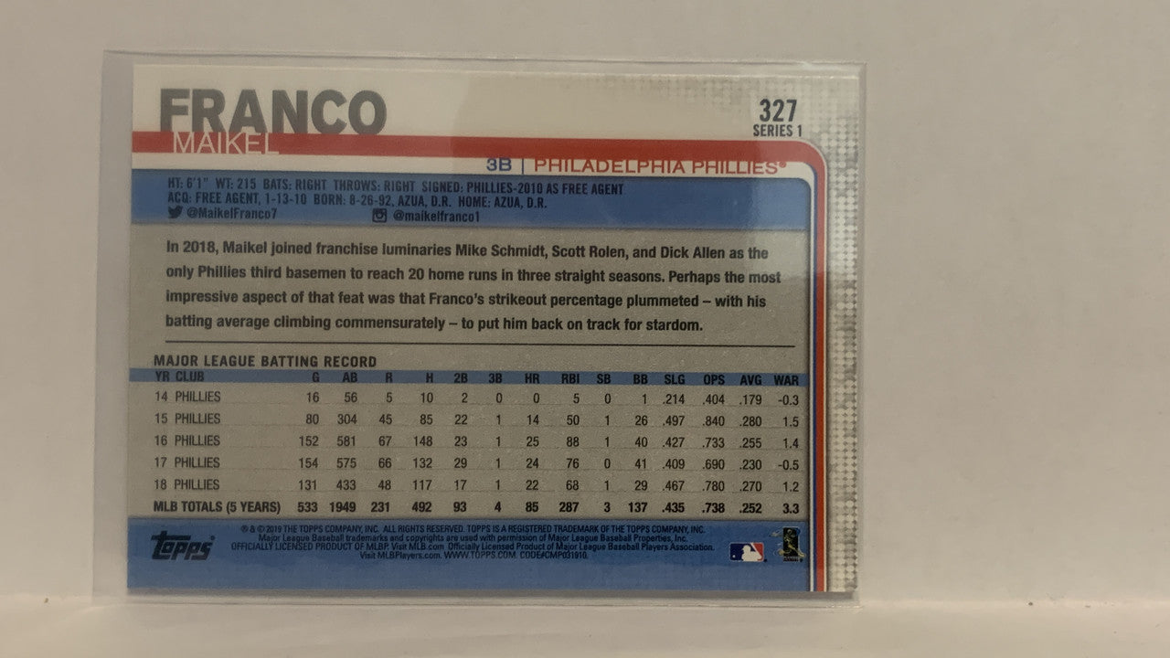 #327 Maikel Franco Philadelphia Phillies 2019 Topps Series 1 Baseball Card