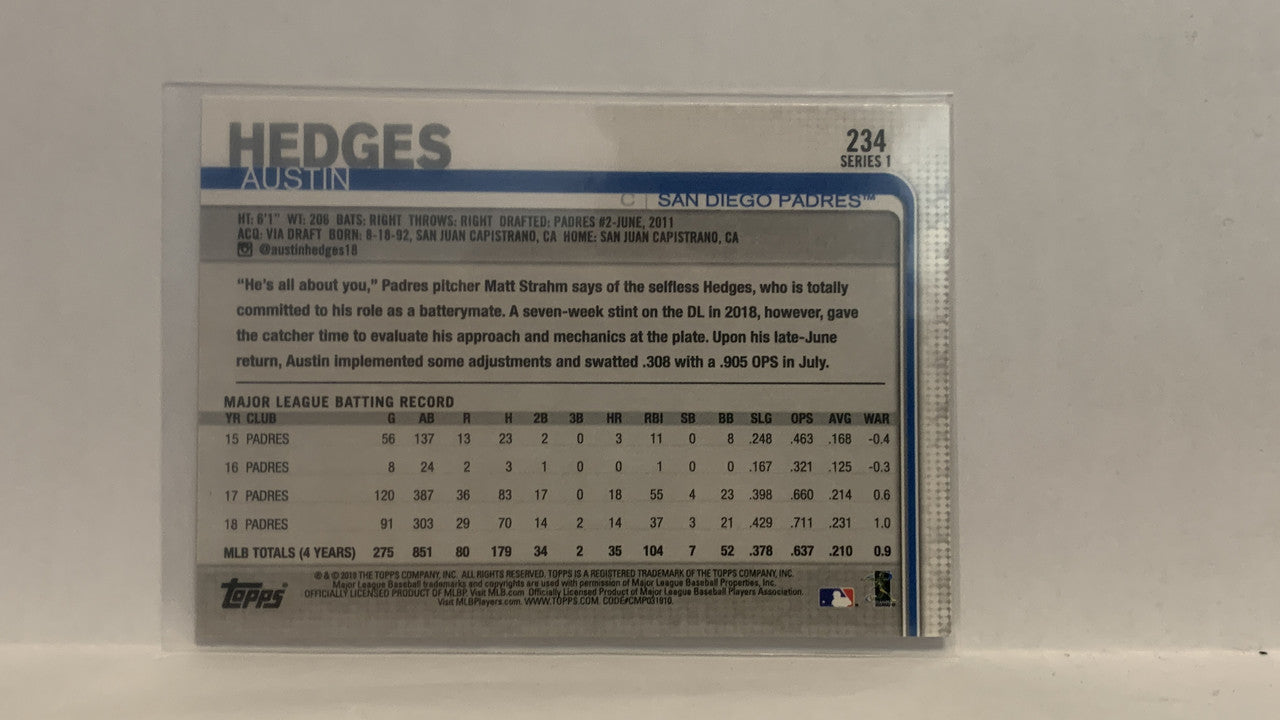 #234 Austin Hedges San Diego Padres 2019 Topps Series 1 Baseball Card