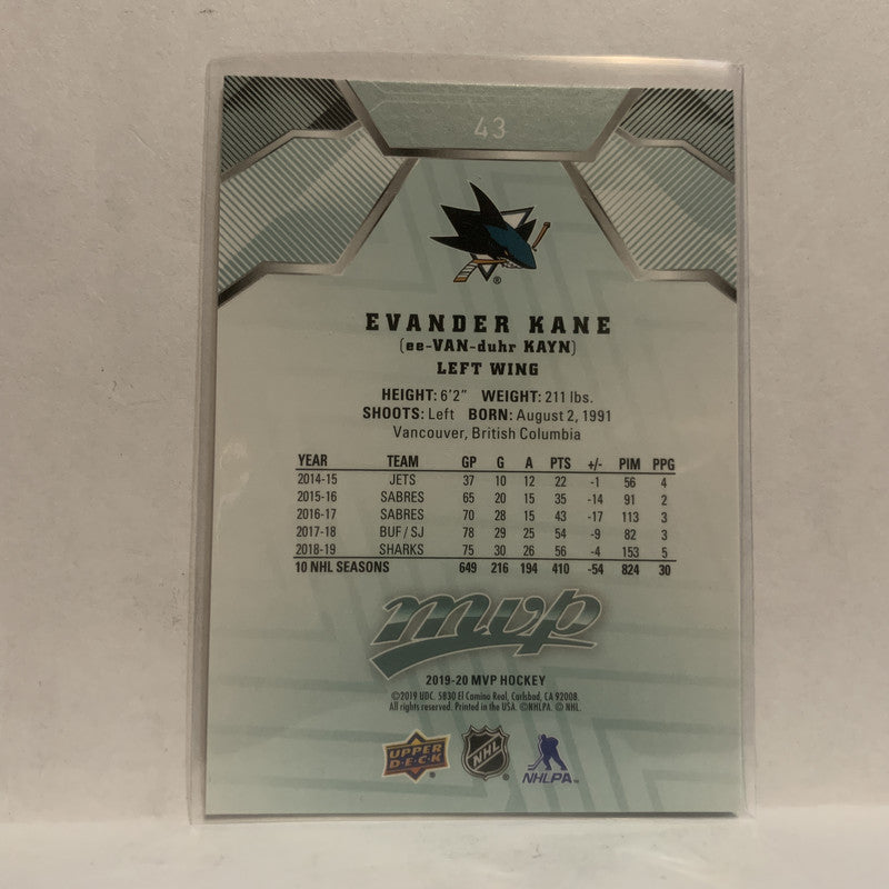 #43 Evander Kane San Jose Sharks 2019-20 Upper Deck MVP Hockey Card KL