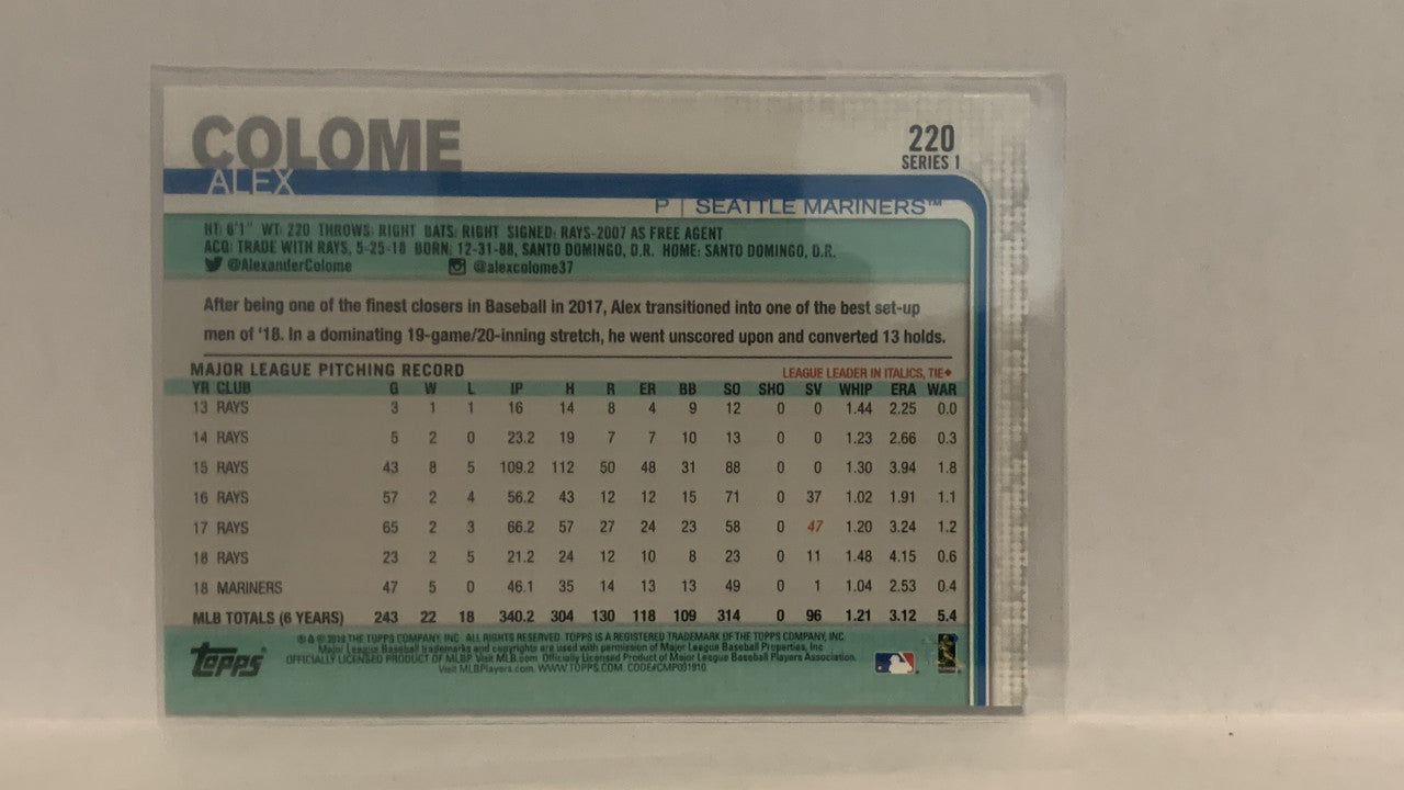#220 Alex Colome Seattle Mariners 2019 Topps Series 1 Baseball Card