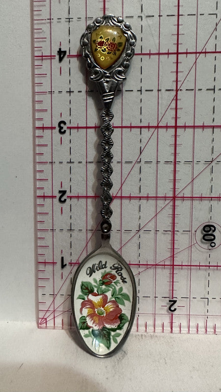 Alberta Wild Rose Painted Alberta Souvenir Spoon