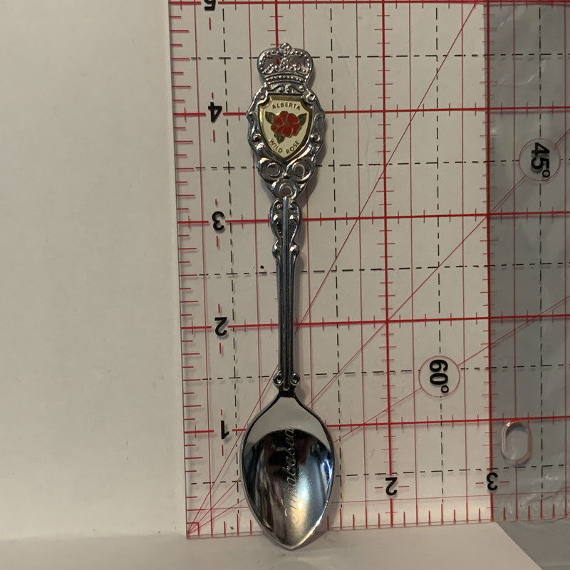 Athabasca Alberta Wild Rose Flower collectable Souvenir Spoon PV