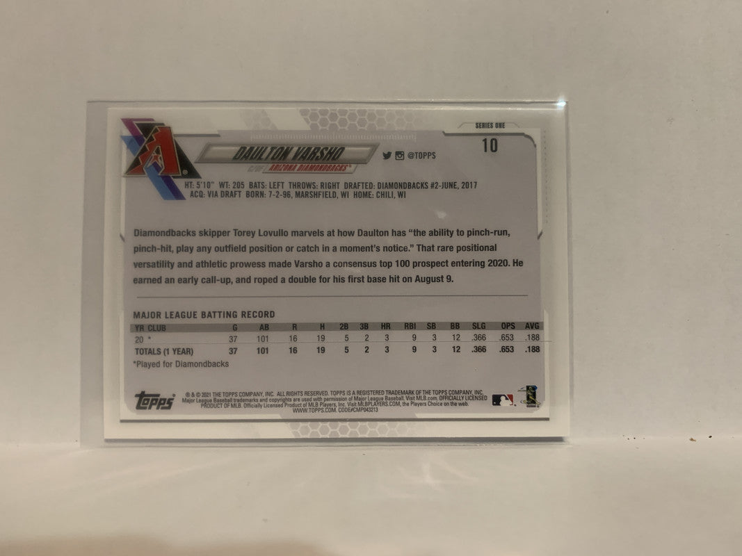 #10 Daulton Varsho Rookie Arizona Diamondbacks 2021 Topps Series One Baseball Card