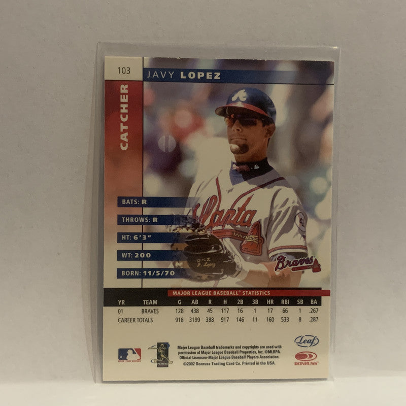 #103 Javy Lopez Atlanta Braves 2002 Donruss Leaf Baseball Card HU