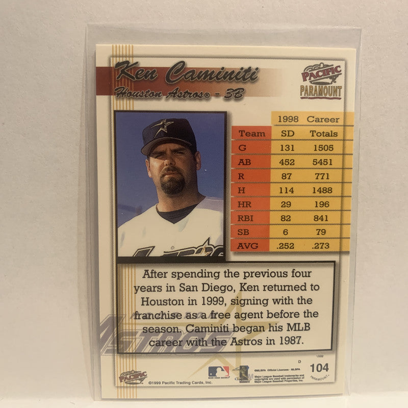 #104 Ken Caminiti Houston Astros 1999 Pacific Paramount Baseball Card HH