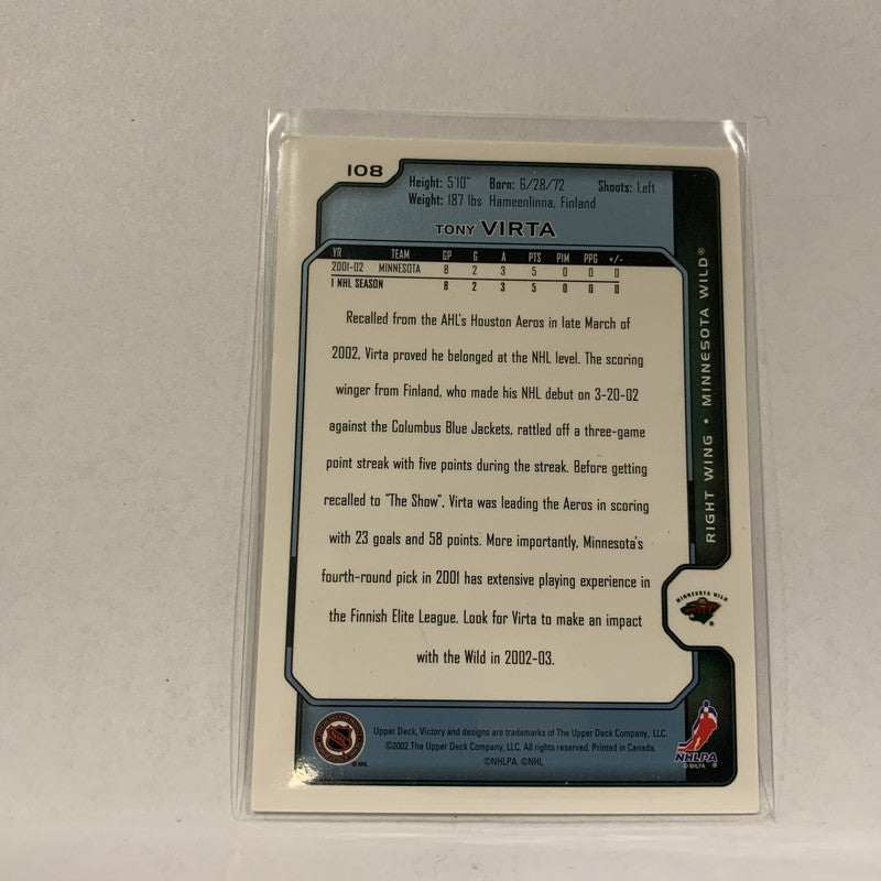 #108 Tony Virta Minnesota Wild 2002-03 UD Victory Hockey Card AE