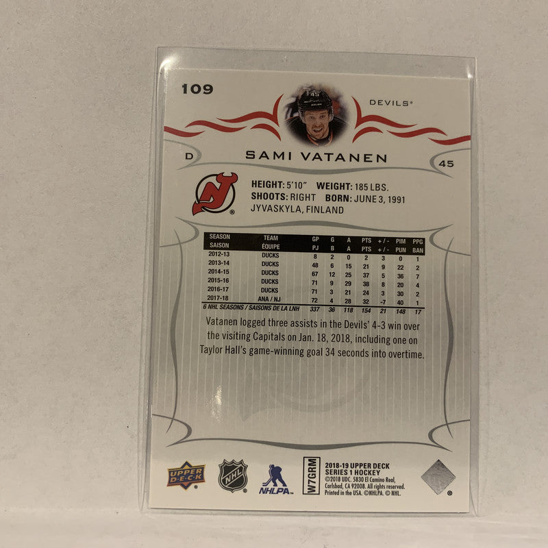 #109 Sami Vatanen New Jersey Devils Series 1 2018-19 Upper Deck Hockey Card A2V