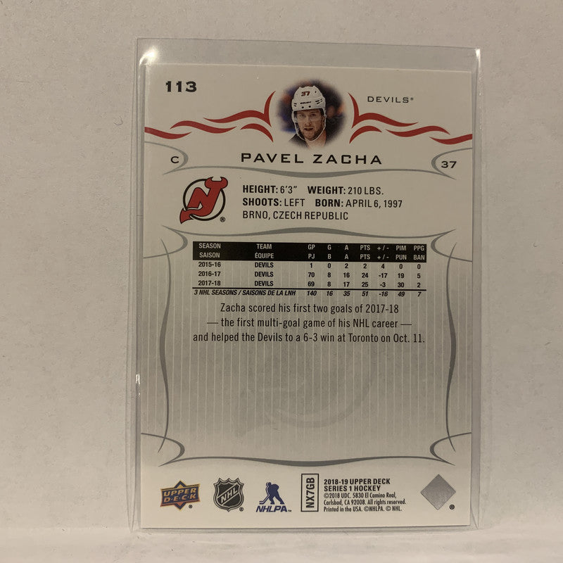 #113 Pavel Zacha New Jersey Devils Series 1 2018-19 Upper Deck Hockey Card A2K