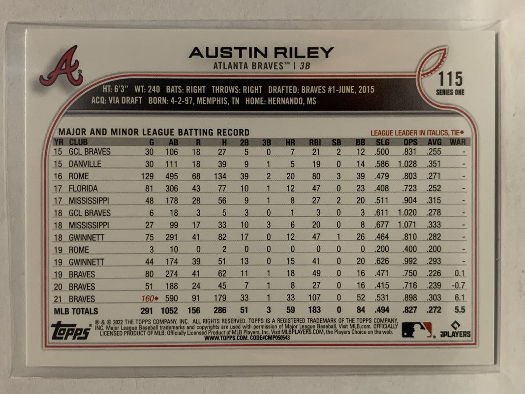 #115 Austin Riley Atlanta Braves 2022 Topps Series One Baseball Card MLB