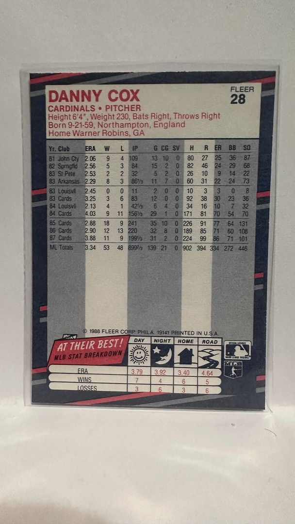 #28 Danny Cox St Louis Cardinals 1988 Fleer Baseball Card