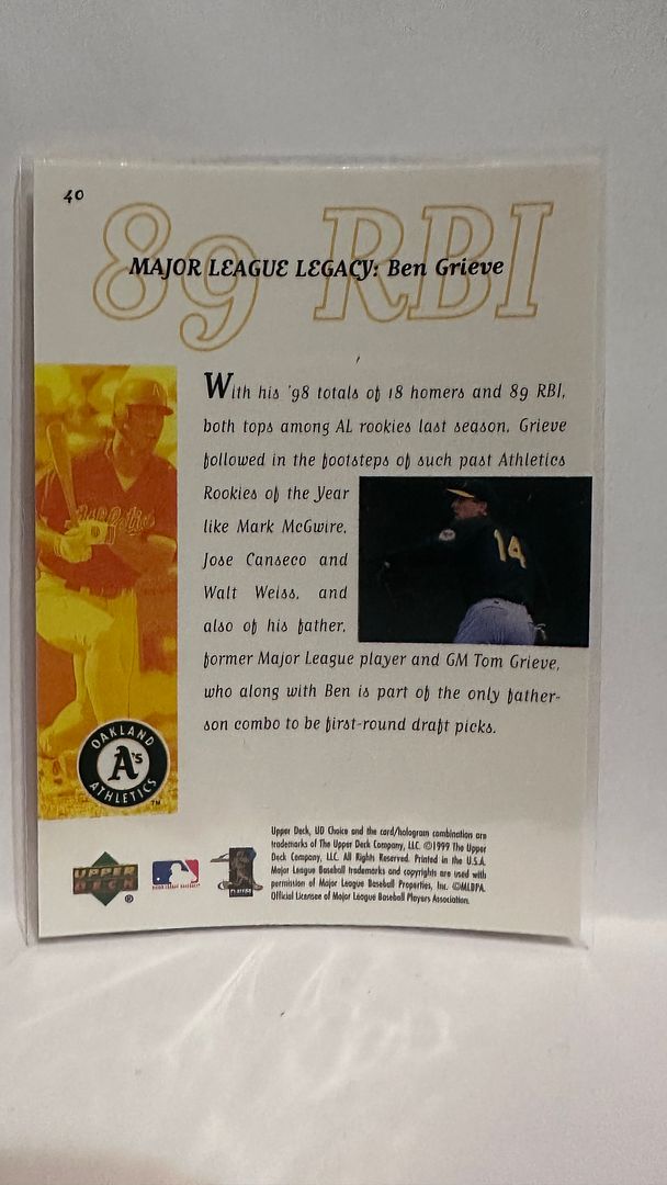 #40 Ben Grieve Cover Glory Oakland Athletics 1999 Upper Deck Choice Baseball Card