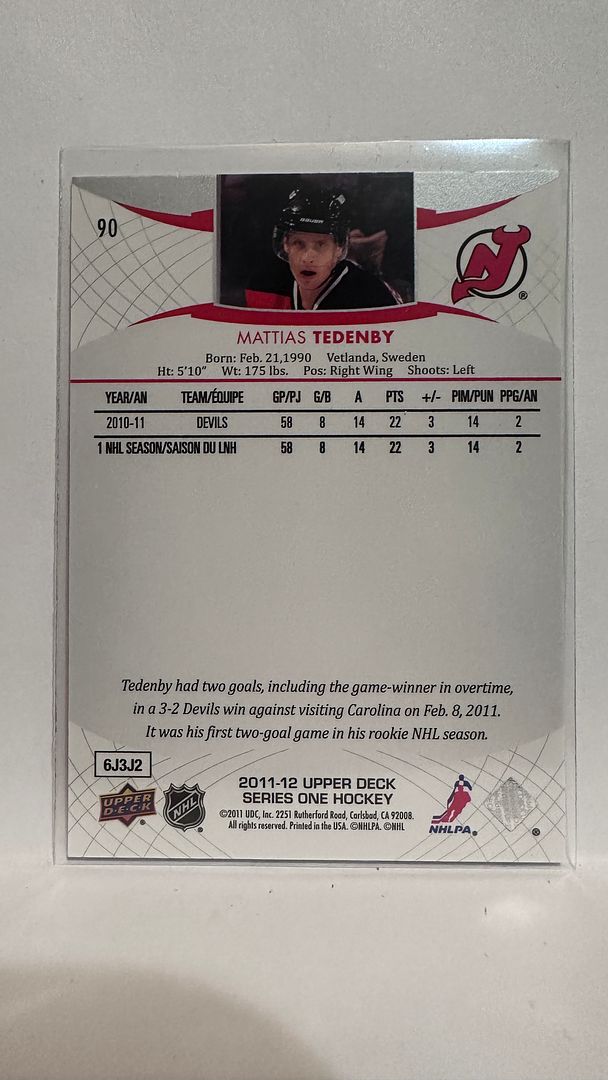 #90 Mattias Tedenby New Jersey Devils 11-12 Upper Deck Series 1 Hockey Card