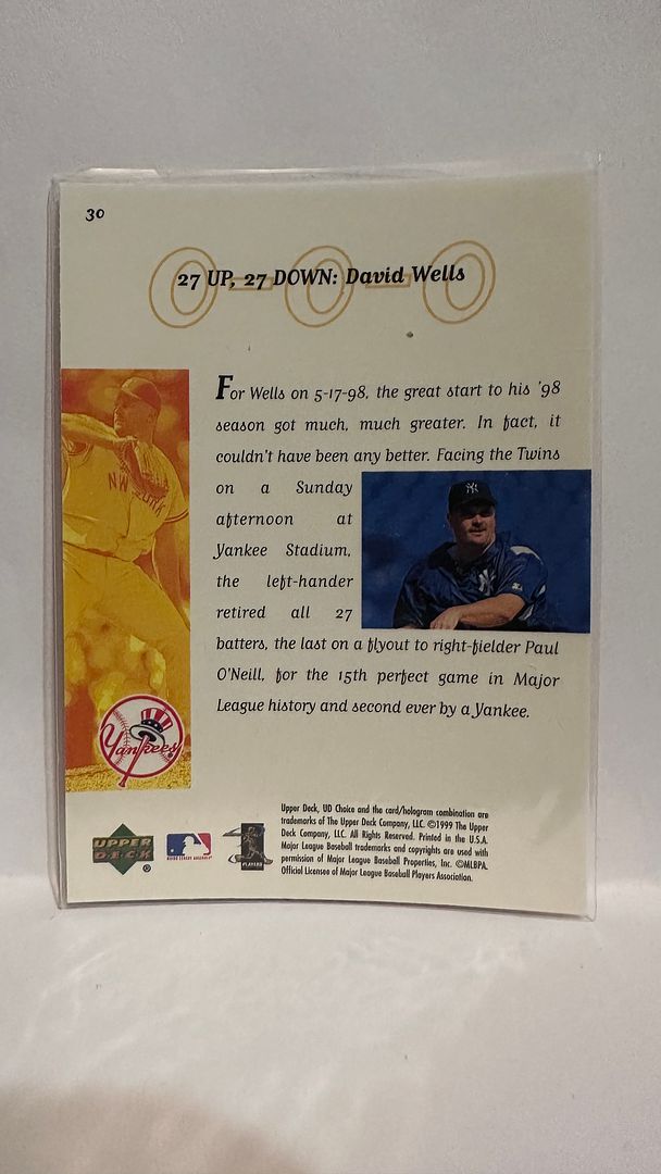 #30 David Wells Cover Glory New York Yankees 1999 Upper Deck Choice Baseball Card