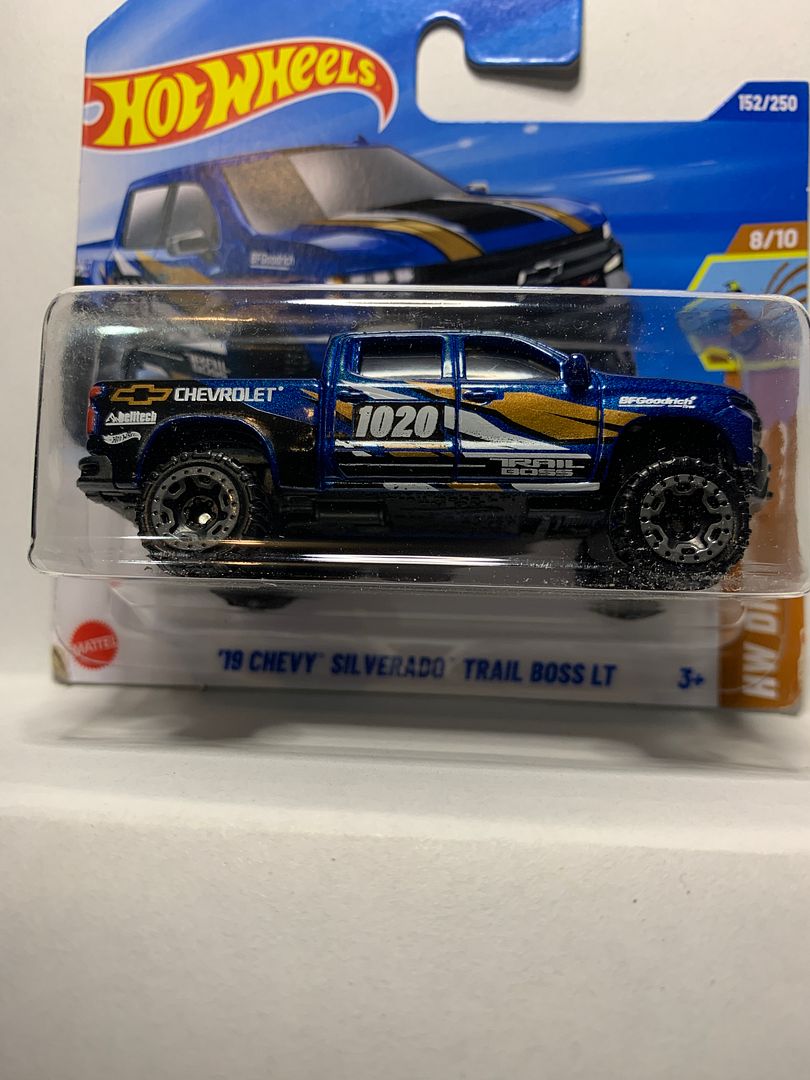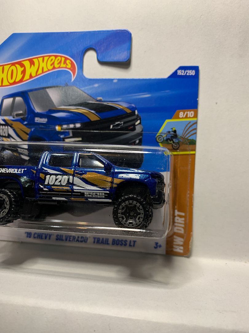 Blue '19 Chevy Silverado Trail Boss Lt HW Dirt Short Card Hot Wheels Diecast Car
