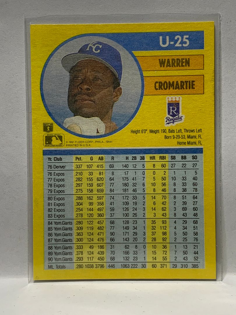 # U25 Warren Cromartie Kansas City Royals 1991 Fleer Update Baseball Cards