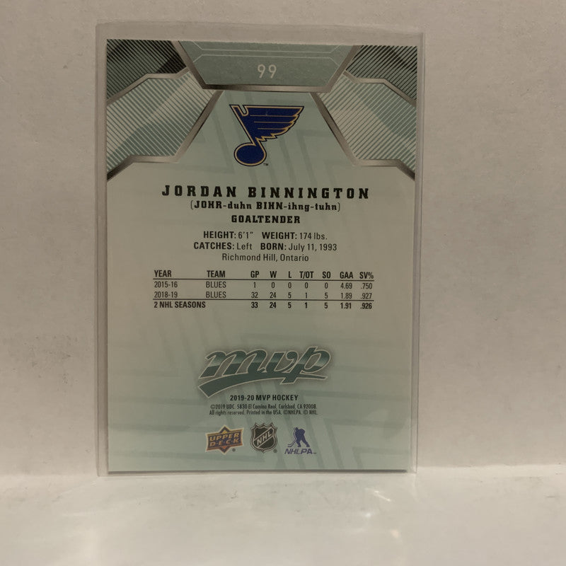 #99 Jordan Binnington St Louis Blues 2019-20 Upper Deck MVP Hockey Card KO