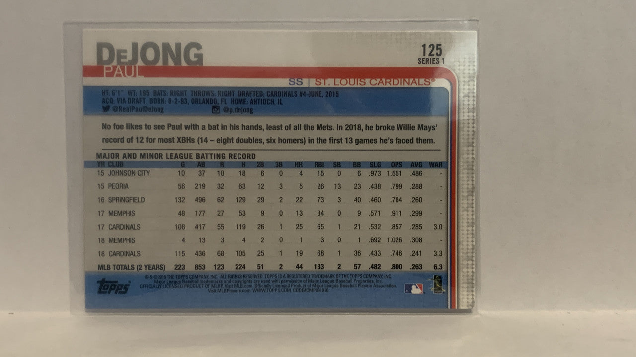 #125 Paul Dejong St Louis Cardinals 2019 Topps Series 1 Baseball Card