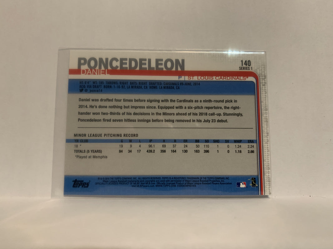 #140 Daniel Poncedeleon Rookie St Louis Cardinals 2019 Topps Series 1 Baseball Card