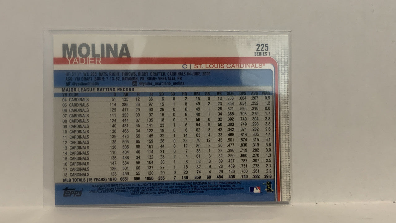 #225 Yadier Molina St Louis Cardinals 2019 Topps Series 1 Baseball Card