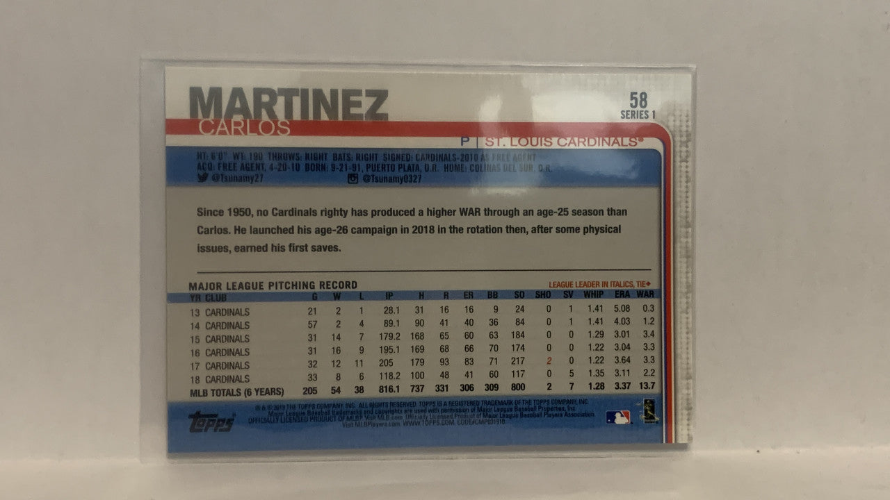 #58 Carlos Martinez St Louis Cardinals 2019 Topps Series 1 Baseball Card